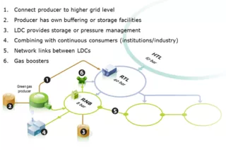 One of the issues faced by potential green gas producers is the available feed-in capacity in the Dutch gas network. The demand for gas is heavily dependent on the seasons: demand is high in winter and low in summer. Demand in urban areas is also greater than in rural areas and the demand for gas is high during the day and relatively low at night.
